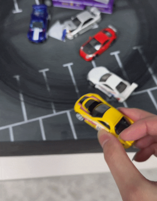 Mini-auto’s glijden en driften over het speelbord alsof je een echte straatrace bestuurt.