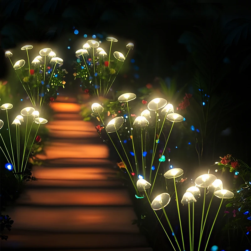 Modos de iluminação duplos: A luz solar do jardim oferece modos cintilantes e constantes, imitando o brilho quente e encantador dos vaga-lumes ou a aparência caprichosa dos cogumelos; eleva instantaneamente o ambiente dos seus espaços ao ar livre, como jardins, quintais ou caminhos
